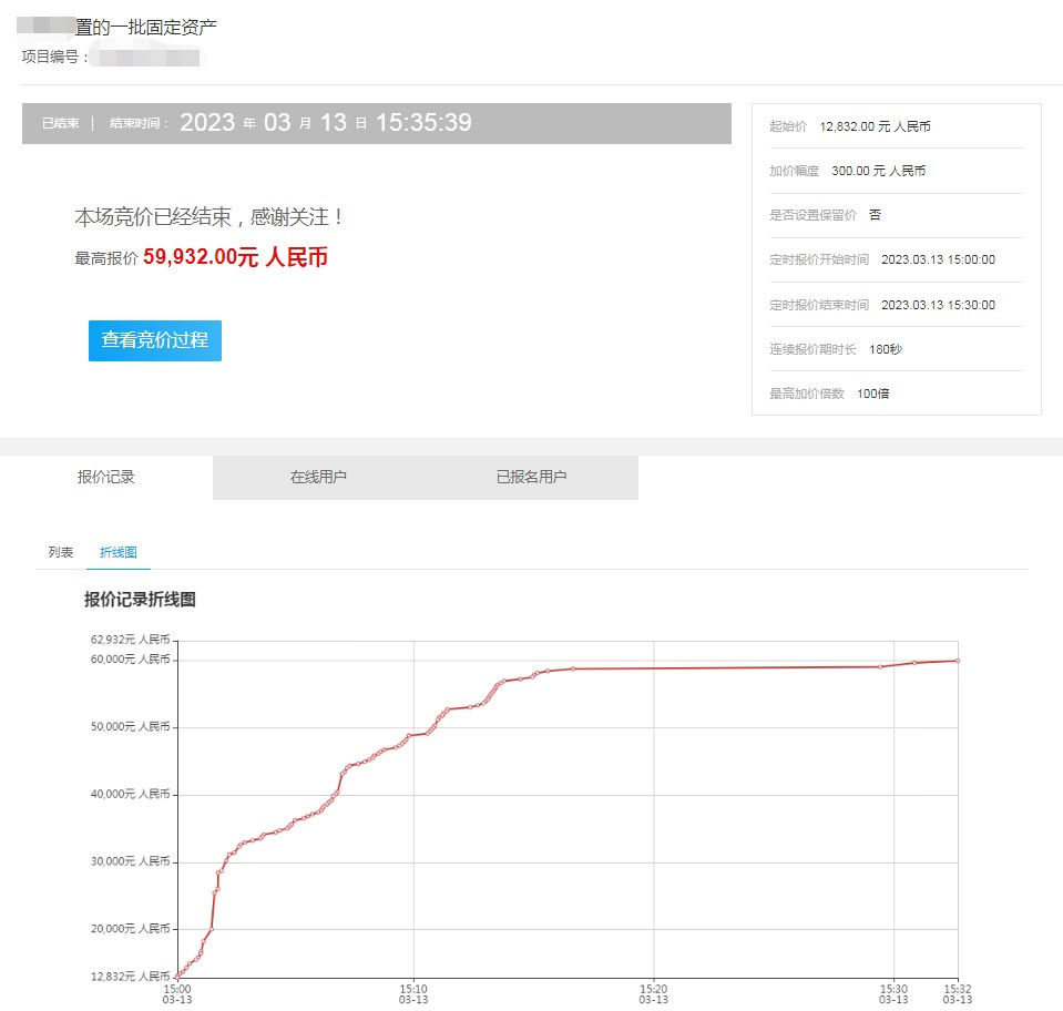2023年我市某传媒企业委托佛山南方产权挂牌转让报废处置的一批固定资产,以设备残值评估定价,挂牌底价约为1.28万元。经过97轮报价,最终以5.99万元成交,溢价4.71万元,增值率达到391.66%。
